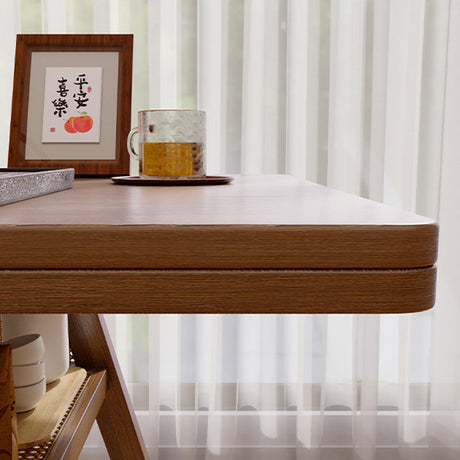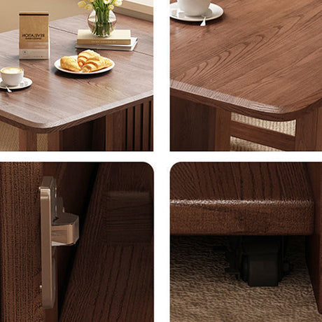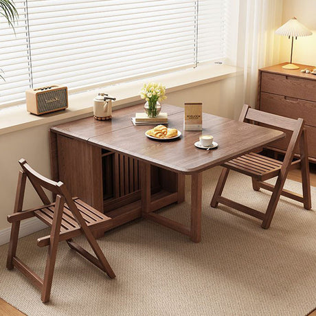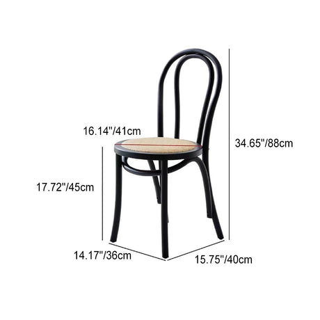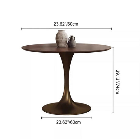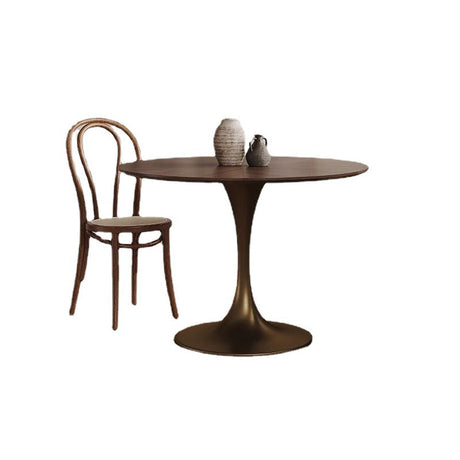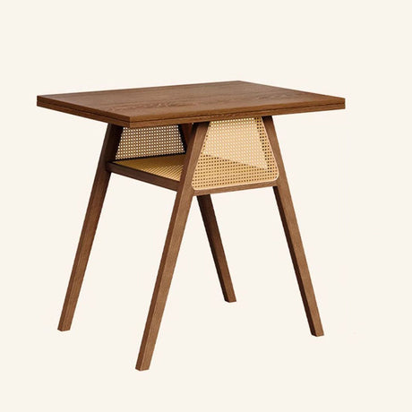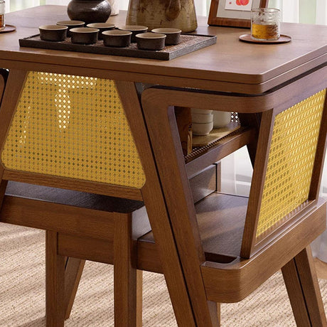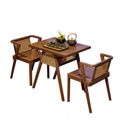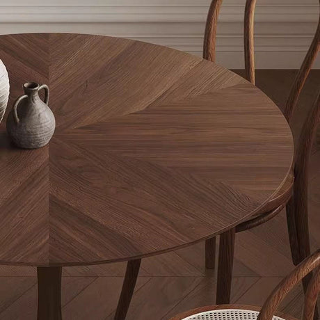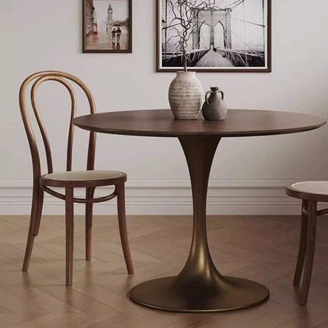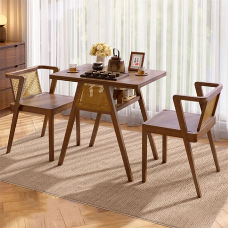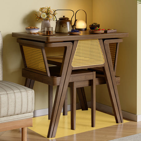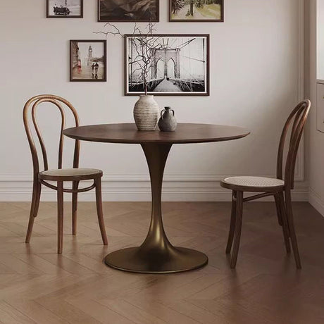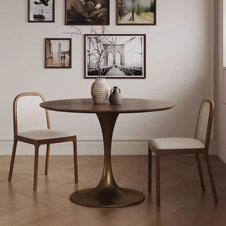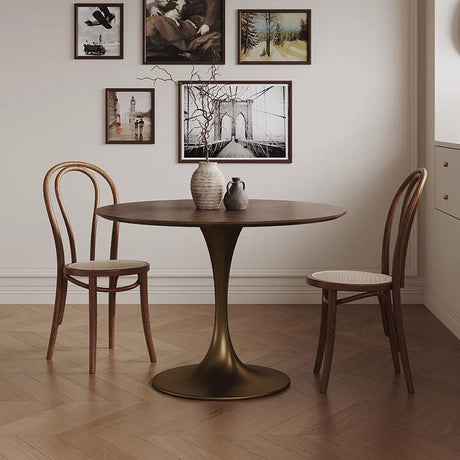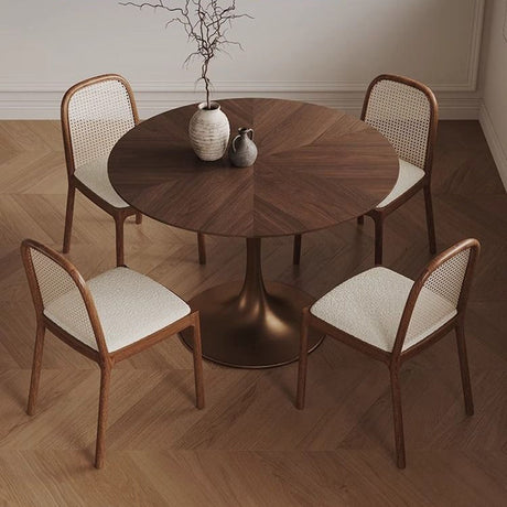 Chic Contemporary Retro Round Walnut & Copper Rattan Dining Table with 2 Chairs