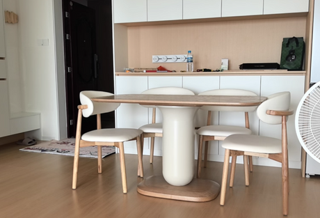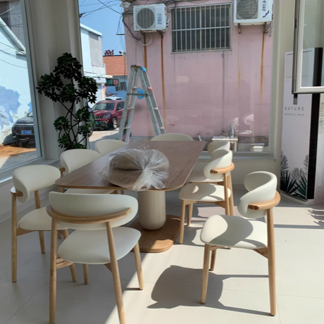 Nordic Contemporary Rectangular Ash Wood Slab Dining Table & Chairs Set - Seats 4-6
