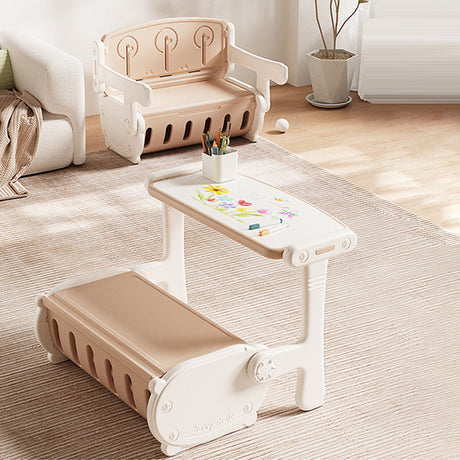 Chic Contemporary Rectangular HDPE Desk & Chair Set with Built-In Storage Cabinet for Living Room